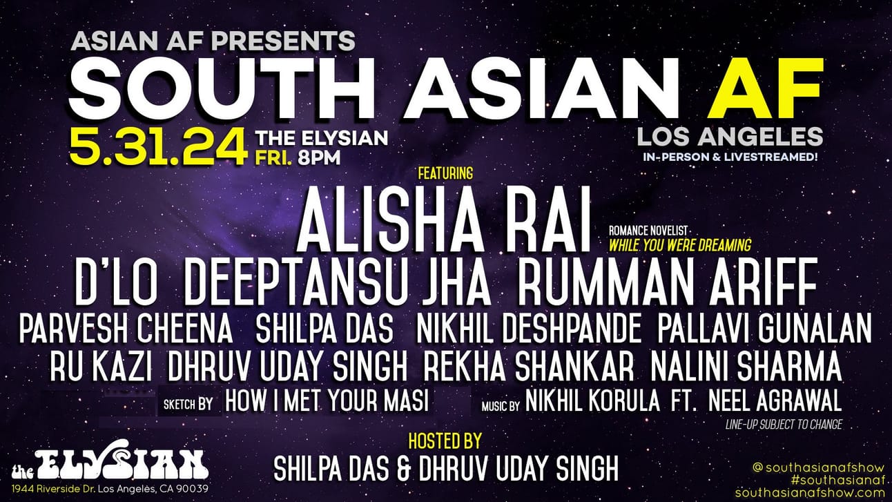 Launched in May 2018, South Asian AF is LA's largest comedy variety show series featuring South Asian comedians, improvisers, sketch performers, musicians, storytellers, and more.
