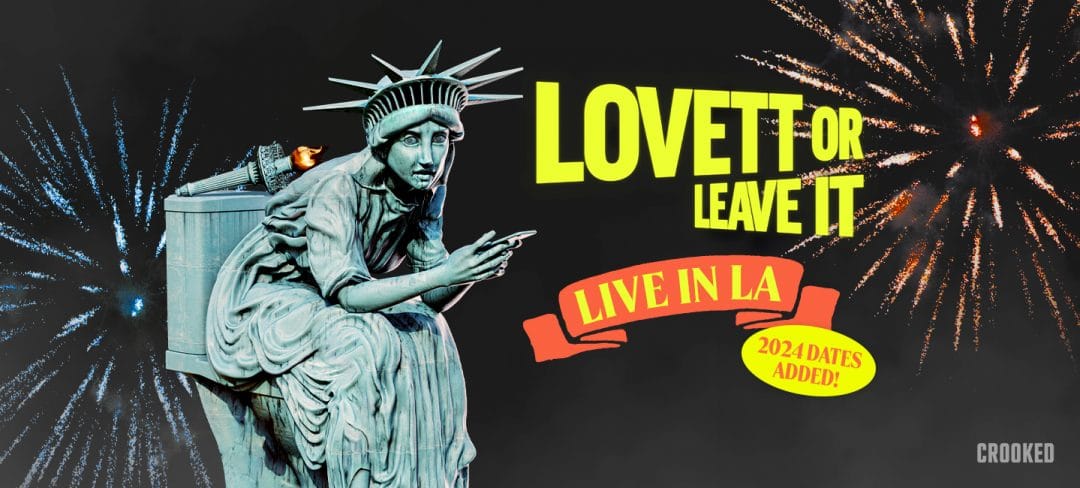 Lovett or Leave It is a live variety show and podcast that breaks down the week’s politics and pop culture news with sketches, games, & jokes featuring Jon Lovett and an all-star lineup of guests!